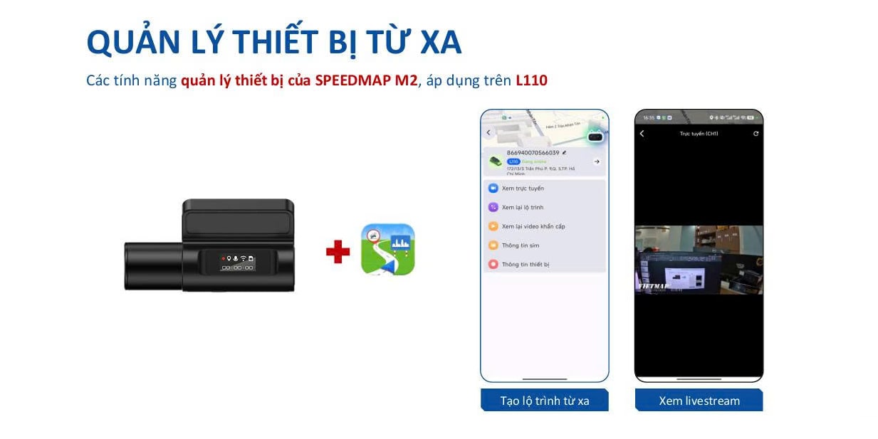Các tính năng quản lý thiết bị từ xa có ở Vietmap Speedmap M2 sẽ trực tiếp được ứng dụng trên Vietmap L110.