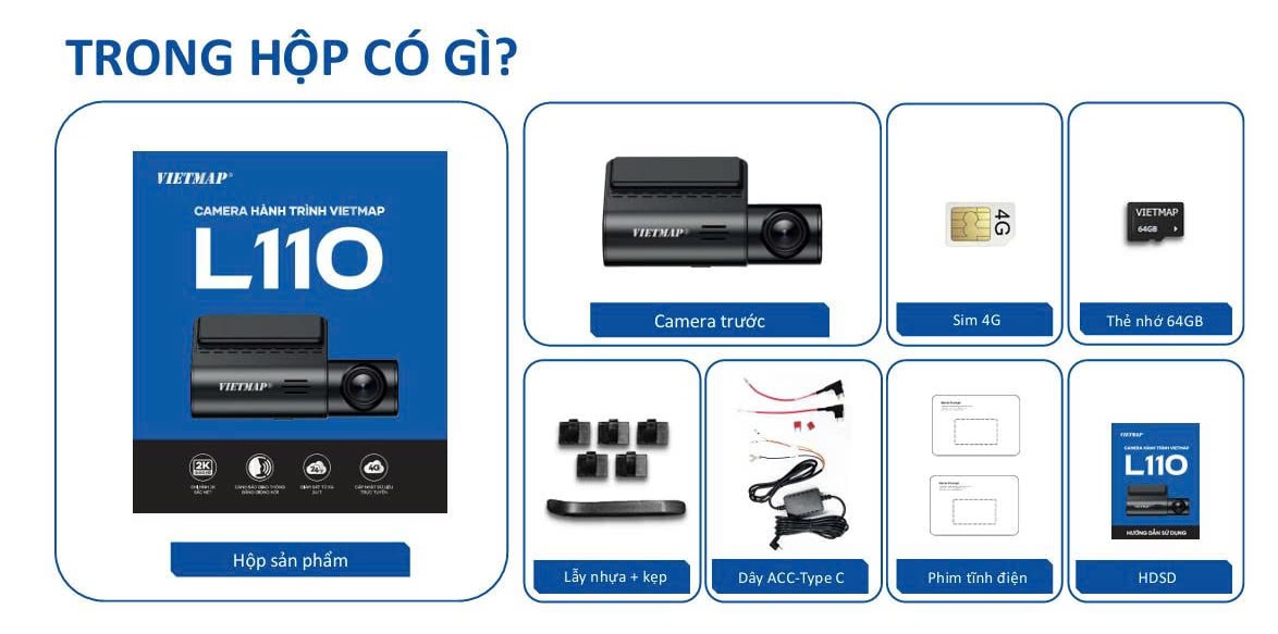 Quý khách hàng khi mua camera hành trình Vietmap L110 tại Thành Nam GPS sẽ được tặng ngay thẻ nhớ 64GB, sim 4G 12 tháng giám sát định vị và xem camera online, phần mềm dẫn đường Vietmap Live 12 tháng.