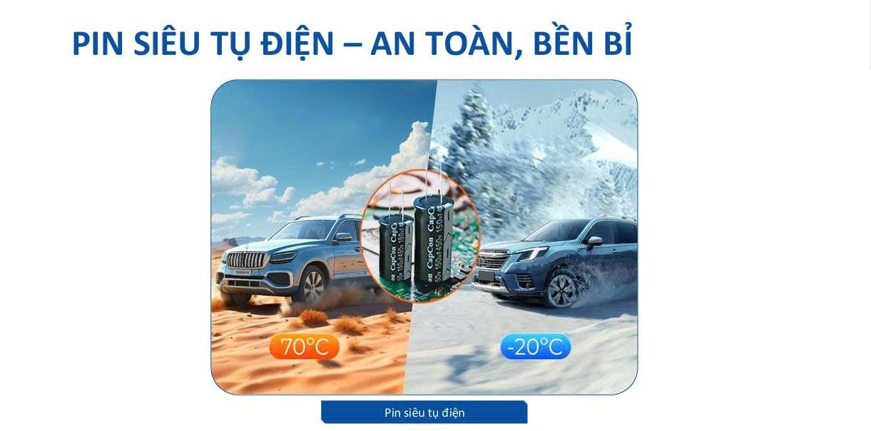 Việc sử dụng pin siêu tụ điện sẽ giúp camera hành trình Vietmap L110 có độ bền cao và tuổi thọ dài hơn gấp nhiều lần so với những camera sử dụng các dòng pin thông thường.