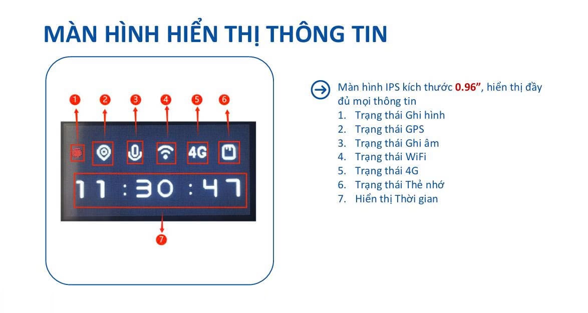 Tuy màn hình của Vietmap L110 có kích thước nhỏ chỉ khoảng 0.96 inch. Nhưng hệ thống thông tin của camera được thiết kế và hiển thị một cách logic, dễ nhìn. Nhờ vậy mà người dùng có thể dễ dàng quan sát và thao tác.