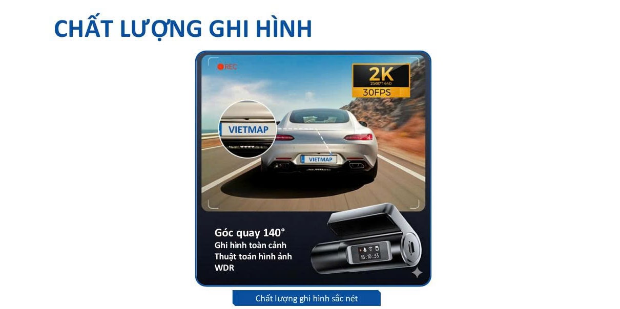 Sản phẩm có độ phân giải lên tới 2K (2560×1440P), ghi lại sắc nét được mọi tình huống xảy ra phía trước xe.