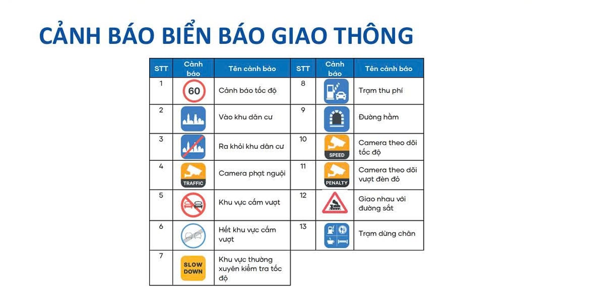 Với các thông tin cảnh báo về: Tốc độ giới hạn; Cảnh báo ra/vào khu dân cư; Camera phạt nguội; Biển báo cấm vượt/cấm rẽ; Camera theo dõi vượt đèn đỏ… sẽ giúp người dùng tập trung và chủ động hơn trong suốt hành trình cầm lái của mình. Đảm bảo tham gia giao thông đúng luật và giảm thiểu tối đa các tính huống va chạm không đáng có.