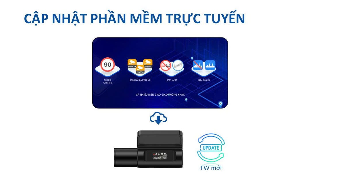 Khi lắp đặt camera hành trình Vietmap L110 người dùng sẽ không cần thực hiện các thao tác thủ công để cập nhật phần mềm cho thiết bị. Mà thay vào đó mọi dữ liệu đều có thể tự động cập nhật, tải xuống và cài đặt online. Nhờ vậy mà L110 luôn có hệ thống dữ liệu cảnh báo mới nhất, giúp người dùng an toàn hơn trên mọi hành trình.